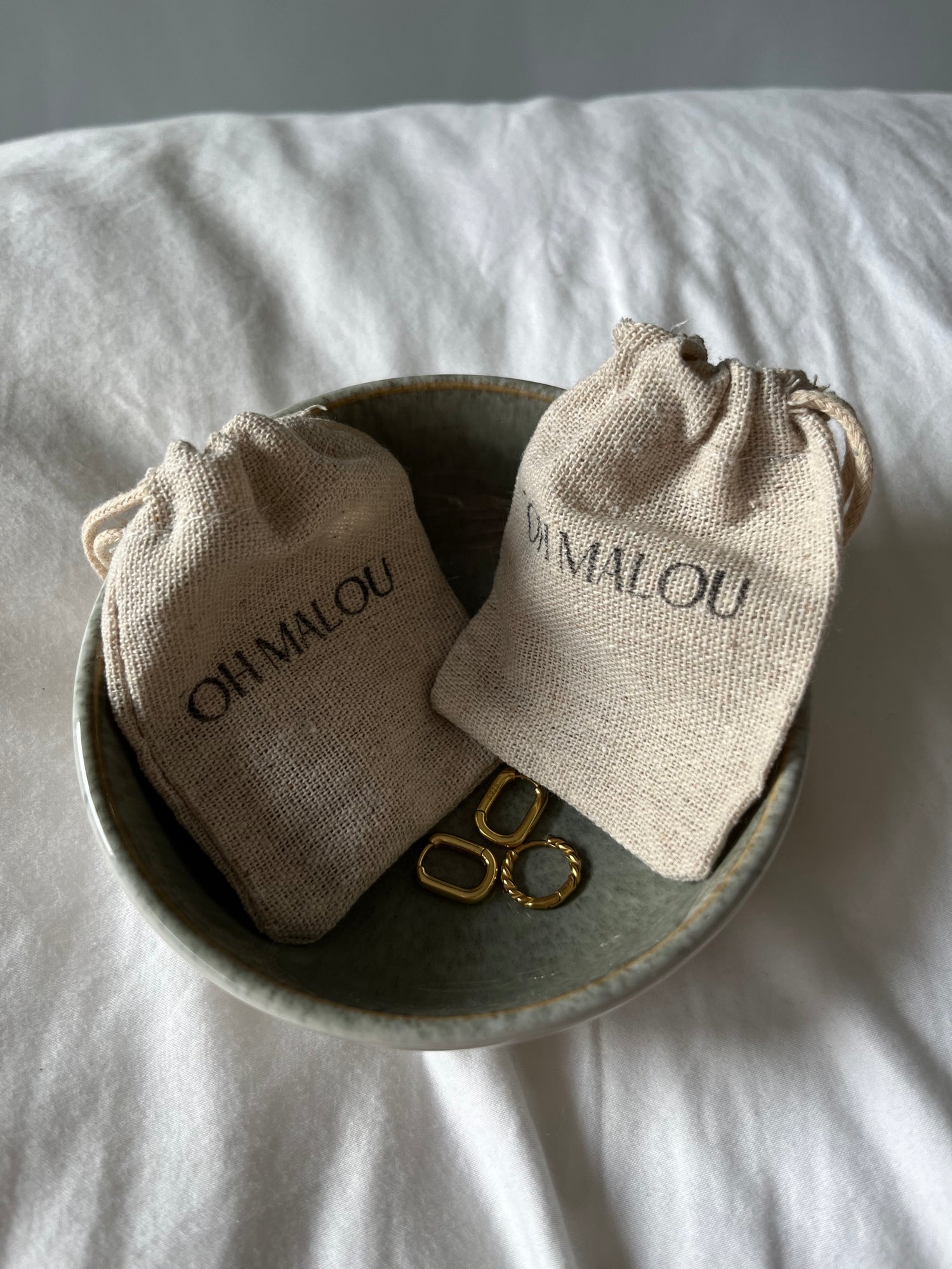 Lagere deinen Schmuck richtig: Bewahre deine Schmuckstücke separat unseren mitgelieferten Leinensäckchen auf, um Kratzer und Beschädigungen zu vermeiden.
